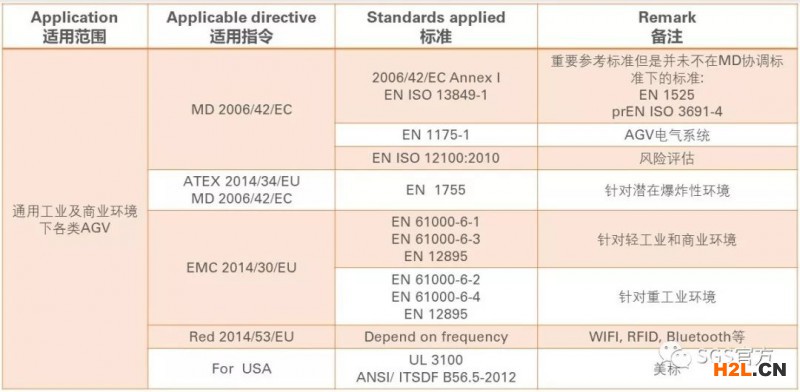 下方表格是目前全球主要的AGV法律法規(guī)一覽表: