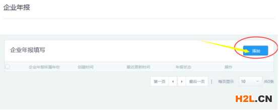 3、點(diǎn)擊“企業(yè)年報(bào)”后進(jìn)入下圖下面,然后點(diǎn)擊右方添加。