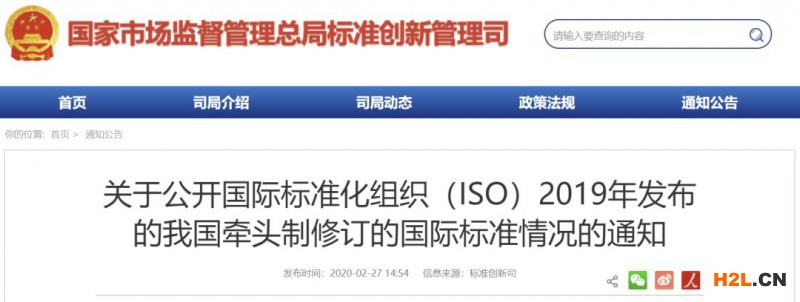 關(guān)于公開國際標準化組織(ISO)2019年發(fā)布的我國牽頭制修訂的國際標準情況的通知