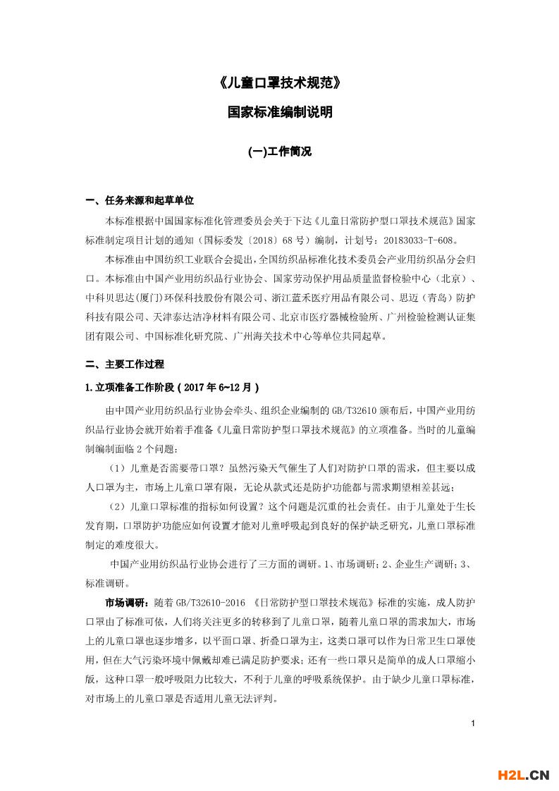 《兒童口罩技術(shù)規(guī)范》編制說明