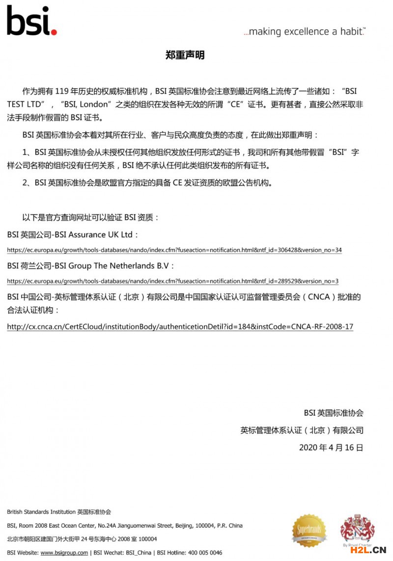 針對最近網(wǎng)絡(luò)上流傳諸如“BSI TEST LTD”“BSI,London”之類的組織發(fā)無效的所謂“CE”證書、制作假冒BSI證書的情況,日前,英國標準協(xié)會 (BSI)在華分支機構(gòu)——英標管理體系認證(北京)有限公司發(fā)表聲明,表示BSI從未授權(quán)任何其他組織發(fā)放任何形式的證書,與所有帶假冒“BSI”字樣公司名稱的組織沒有任何關(guān)系。聲明同時提示,通過官方查詢網(wǎng)址可以驗證BSI資質(zhì)。