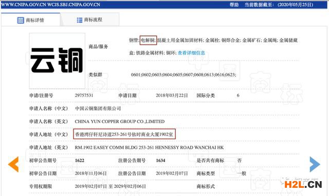目前第6類(lèi)電解銅商品上,唯一核準(zhǔn)注冊(cè)的“云銅”商標(biāo),注冊(cè)號(hào)29757531: