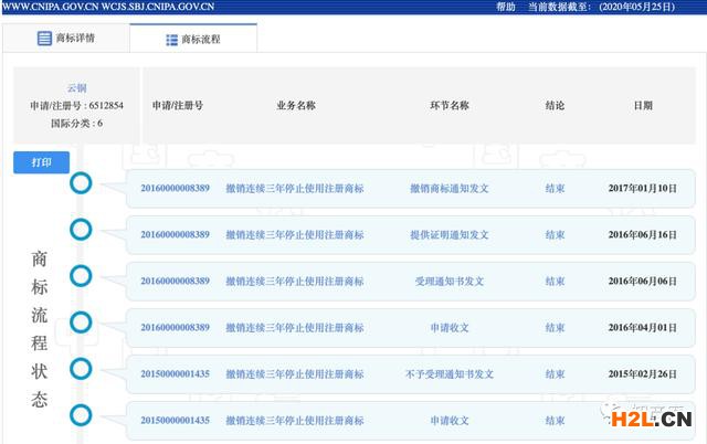 2008年1月云南銅業(yè)股份有限公司申請(qǐng)?jiān)陔娊忏~商品上的云銅商標(biāo),核準(zhǔn)注冊(cè)以后,在2017年就被撤銷(xiāo)了: