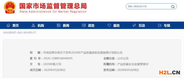 市場監(jiān)管總局關(guān)于發(fā)布2020年產(chǎn)品質(zhì)量