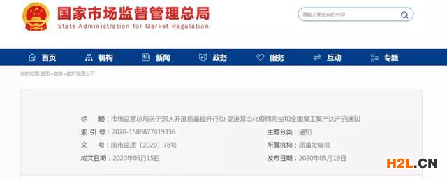 市場監(jiān)管總局關于深入開展質量提升行動  促進常態(tài)化疫情防控和全面復工復產(chǎn)達產(chǎn)的通知