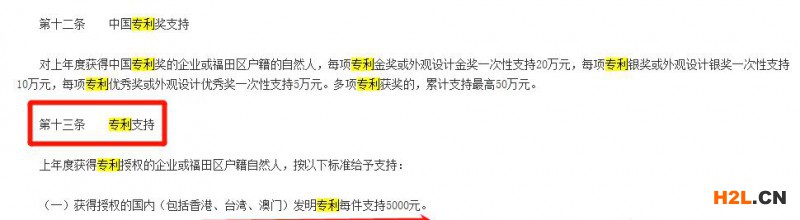上年度獲得專利授權(quán)的企業(yè)或福田區(qū)戶籍自然人,按以下標(biāo)準(zhǔn)給予支持: