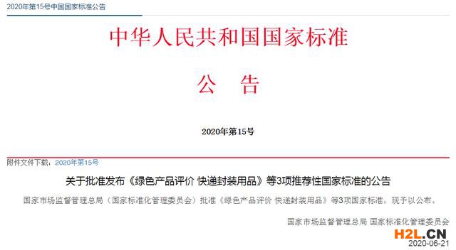 近日,國(guó)家市場(chǎng)監(jiān)督管理總局(國(guó)家標(biāo)準(zhǔn)化管理委員會(huì))批準(zhǔn)發(fā)布《綠色產(chǎn)品評(píng)價(jià) 快遞封裝用品》等3項(xiàng)國(guó)家標(biāo)準(zhǔn),詳情如下: