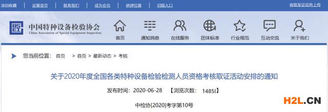 關(guān)于2020年度全國(guó)各類特種設(shè)備檢驗(yàn)檢測(cè)人員資格考核取證活動(dòng)安排的通知