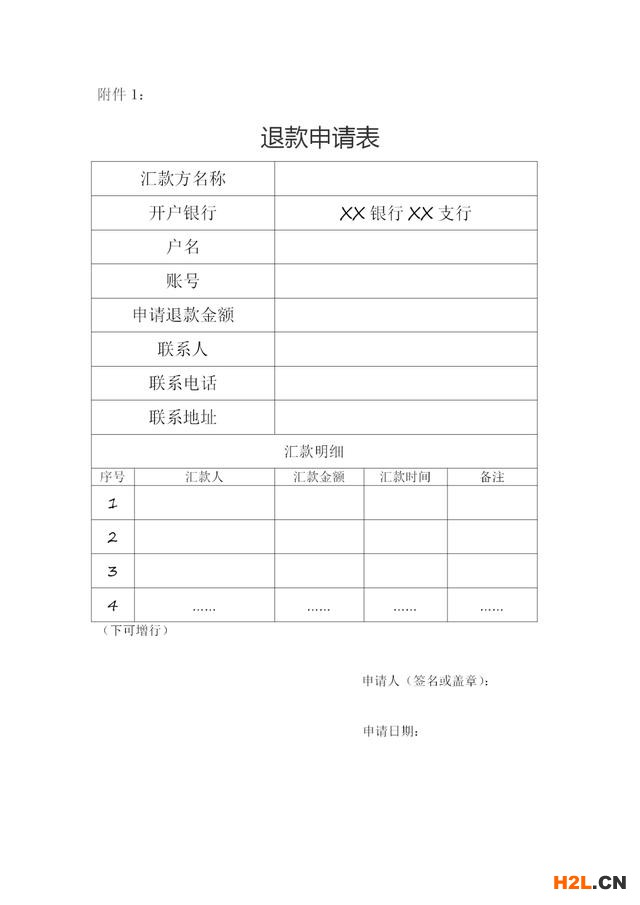 商標(biāo)當(dāng)事人辦理退款,應(yīng)當(dāng)認(rèn)真核實成功匯入商標(biāo)局款項與已確認(rèn)繳費受理的金額差額,填寫退款申請表(附件1)并簽名或加蓋公章,同匯款銀行回單、身份證明材料一并郵寄至商標(biāo)局。其中:退款申請表中應(yīng)填寫匯款明細(xì),并將序號對應(yīng)標(biāo)注在所附匯款銀行回單上;身份證明材料是指匯款人為自然人的,需提供身份證復(fù)印件,匯款人為企業(yè)的,需提供營業(yè)執(zhí)照復(fù)印件并加蓋公章。