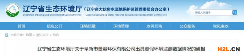 遼寧省生態(tài)環(huán)境廳關于阜新市景澄環(huán)保有限公司出具虛假環(huán)境監(jiān)測數據情況的通報