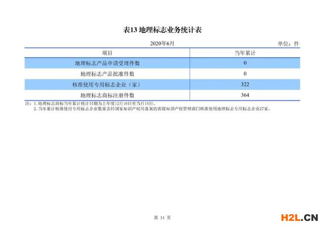 2020 年上半年,我局核準(zhǔn)使用地理標(biāo)志產(chǎn)品專用標(biāo)志企業(yè) 322 家[1],核準(zhǔn)注冊地理標(biāo)志商標(biāo) 364 件。截至 2020 年 6月,累計(jì)批準(zhǔn)地理標(biāo)志產(chǎn)品 2385 個(gè),核準(zhǔn)專用標(biāo)志使用企業(yè) 8811 家,累計(jì)注冊地理標(biāo)志商標(biāo) 5682 件。