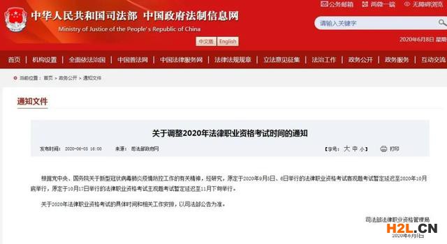 司法部法律職業(yè)資格管理局6月5日發(fā)布通知,根據(jù)黨中央、國務院關于新型冠狀病毒肺炎疫情防控工作的有關精神,經(jīng)研究決定,原定于2020年9月5日、6日舉行的法律職業(yè)資格考試客觀題考試暫定延遲至2020年10月底舉行,原定于10月17日舉行的法律職業(yè)資格考試主觀題考試暫定延遲至11月下旬舉行。具體考試時間和相關工作安排,以司法部公告為準。