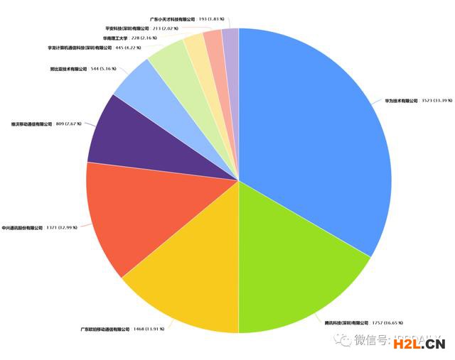 獲得最多發(fā)明專(zhuān)利授權(quán)的申請(qǐng)人:華為技術(shù)有限公司,3523件。此外騰訊(1757件)、歐珀(1468件)、中興(1371件)也都獲得了1000件以上的授權(quán)。