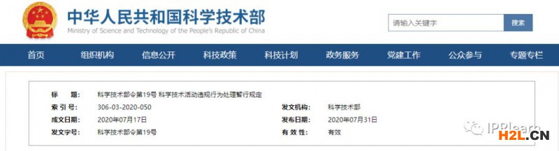 7月31日,科技部官網(wǎng)公布《科學技術(shù)活動違規(guī)行為處理暫行規(guī)定》,自2020年9月1日起施行。