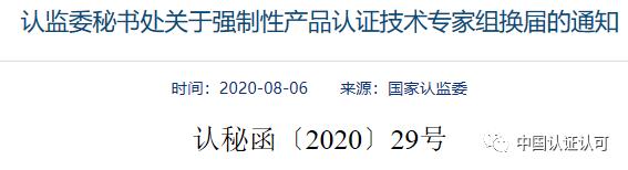 認(rèn)監(jiān)委秘書(shū)處關(guān)于強(qiáng)制性產(chǎn)品認(rèn)證技術(shù)專家組換屆的通知