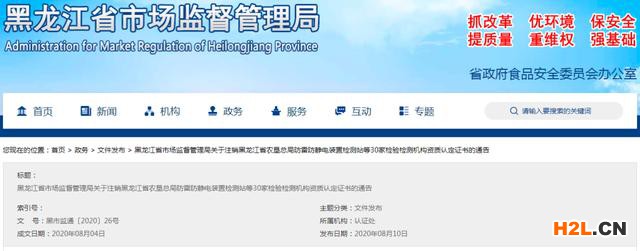 黑龍江省市場監(jiān)督管理局關(guān)于注銷黑龍江省農(nóng)墾總局防雷防靜電裝置檢測站等30家檢驗檢測機(jī)構(gòu)資質(zhì)認(rèn)定證書的通告