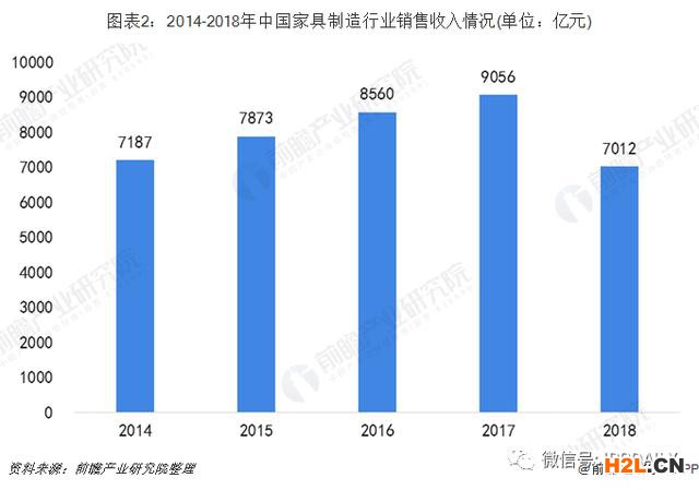 如果問(wèn)中國(guó)哪些行業(yè)最具歷史感,家具行業(yè)必然會(huì)占據(jù)一席,尤其是改革開(kāi)放以來(lái),家具行業(yè)擁有一部慷慨激昂的發(fā)展史,伴隨人類的文明進(jìn)程不斷的上演難以預(yù)測(cè)的行業(yè)史劇。不過(guò)最近幾年家具行業(yè)雖然保持穩(wěn)步前進(jìn),但增速在緩慢下降,尤其是2017-2018年家具行業(yè)銷售收入呈現(xiàn)明顯下降的趨勢(shì),如下圖: