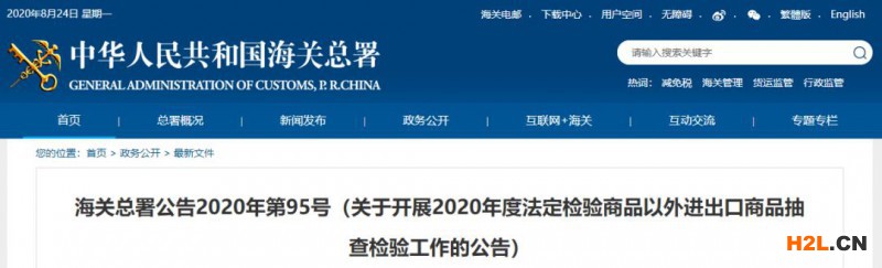 核心提示:近日,海關總署發(fā)布關于開展2020年度法定檢驗商品以外進出口商品抽查檢驗工作的公告。海關總署關于開展2020年度法定檢驗商品以外進出口商品