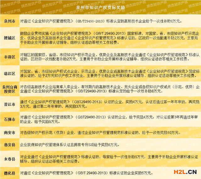 泉州貫標(biāo)補(bǔ)助知多少?泉州市知識(shí)產(chǎn)權(quán)貫標(biāo)獎(jiǎng)勵(lì)政策匯總