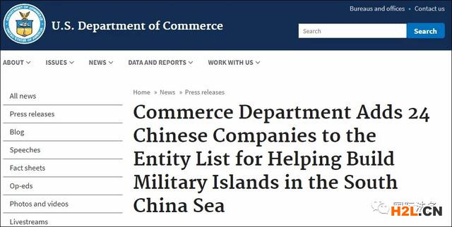 剛剛,當(dāng)?shù)貢r(shí)間8月26日,美國(guó)商務(wù)部宣布將包括中國(guó)交建5家子公司在內(nèi)的24家中國(guó)企業(yè)列入制裁的“實(shí)體清單”,限制其獲取美國(guó)技術(shù),并稱這些企業(yè)幫助中國(guó)軍方在南海修建人工島。