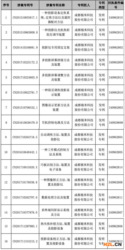 7月21日,光峰科技發(fā)布公告稱:光峰科技針對成都極米科技所持有的包括“多投影屏幕拼接方法及裝置”、“熱失焦補(bǔ)償方法裝置及投影設(shè)備”在內(nèi)的16項(xiàng)發(fā)明專利向國家知識產(chǎn)權(quán)局提出了無效宣告請求,當(dāng)前已收到國家知識產(chǎn)權(quán)局出具的16份《無效宣告請求提交回執(zhí)》。