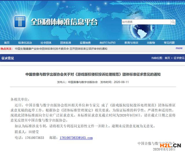 中國音像與數(shù)字出版協(xié)會(huì)關(guān)于對(duì)《游戲版權(quán)侵權(quán)投訴處理規(guī)范》團(tuán)體標(biāo)準(zhǔn)征求意見的通知