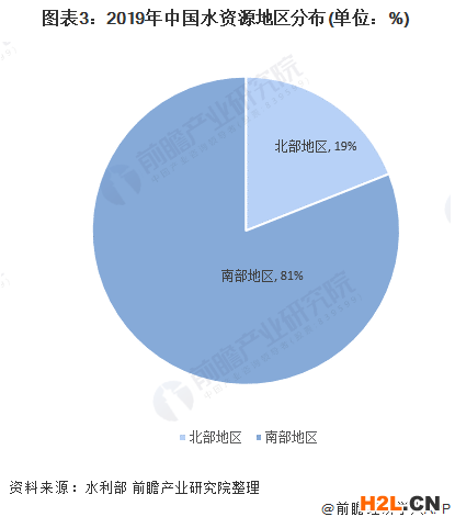 從空間分布來看,我國水資源空間分布不均,截止2019年末,南部地區(qū)水資源量占我國水資源總量的81%,而北方只占19%。北方部分省市面臨水資源短缺的問題,因此水資源的節(jié)約和保護顯得尤為重要。