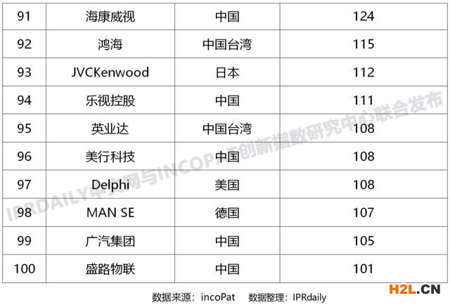 近五年全球企業(yè)「車聯(lián)網(wǎng)智能路側(cè)」發(fā)明專利排行榜(TOP100)