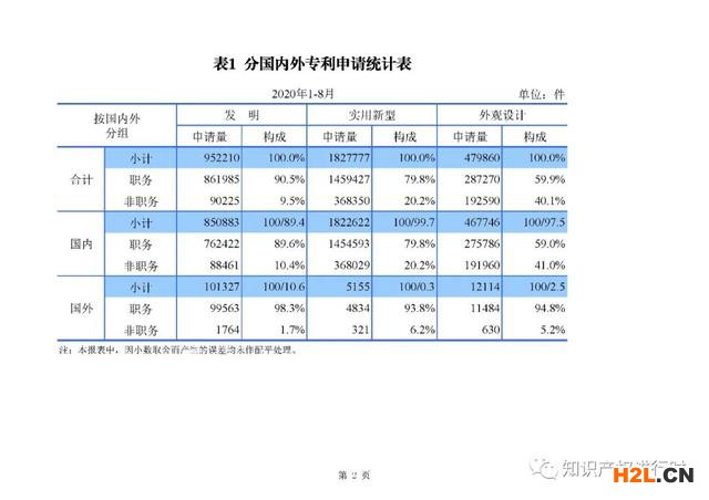 2020年1-8月知識產(chǎn)權(quán)主要統(tǒng)計數(shù)據(jù)
