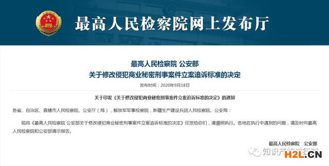 最高檢、公安部印發(fā)《關(guān)于修改侵犯商業(yè)秘密刑事案件立案追訴標(biāo)準(zhǔn)的決定》