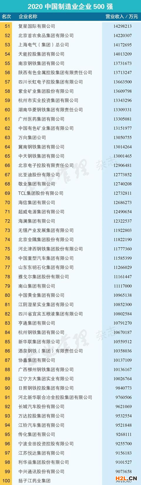 2020中國制造業(yè)企業(yè)500強(qiáng)