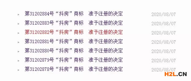 據(jù)商標網(wǎng)數(shù)據(jù)顯示,有幾件“抖房”商標已于近日成功注冊。