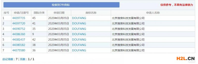 商標網(wǎng)查詢顯示,北京搜房科技發(fā)展有限公司(以下簡稱搜房科技公司)于2018年5月28日提交申請了7件“抖房”商標,分別注冊在第9類、35類、36類、45類等類別,目前均已申請成功。