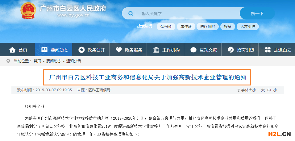 2019年3月7日,廣州市白云區(qū)科技工業(yè)商務(wù)和信息化局發(fā)布《關(guān)于加強(qiáng)高新技術(shù)企業(yè)管理的通知》指出:將加強(qiáng)對(duì)已認(rèn)定高新技術(shù)企業(yè)和今年擬認(rèn)定(包括重新認(rèn)定高企)的管理工作,主要工作內(nèi)容如下: