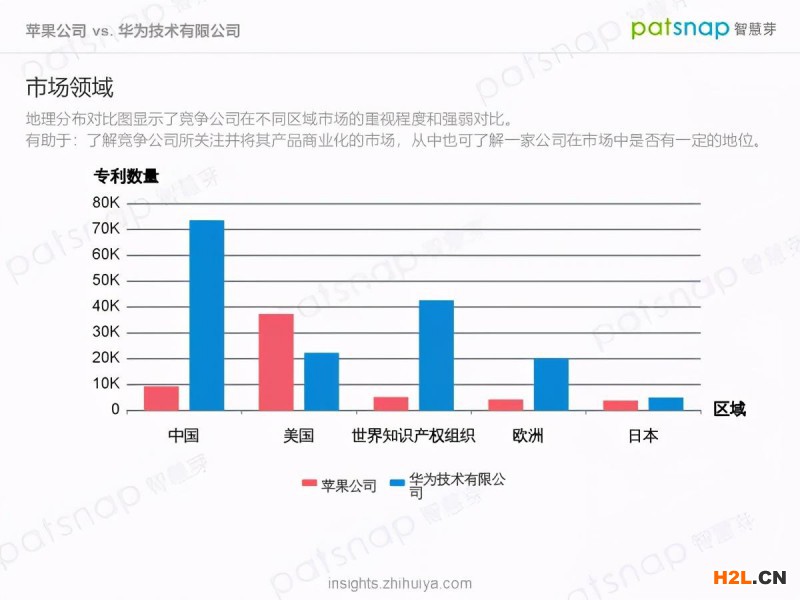 報(bào)告顯示,華為的專利數(shù)量幾乎為蘋果的3倍,達(dá)到206931組,在專利的地域分布上,蘋果公司除了在美國(guó)、韓國(guó)、澳大利亞、中國(guó)臺(tái)灣等少于幾個(gè)國(guó)家和地區(qū)優(yōu)于華為之外,其他區(qū)域市場(chǎng)華為均大幅領(lǐng)先。