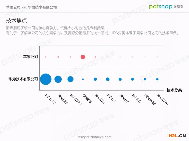 最后,我們?cè)賮砜纯刺O果和華為技術(shù)焦點(diǎn)的專利布局。