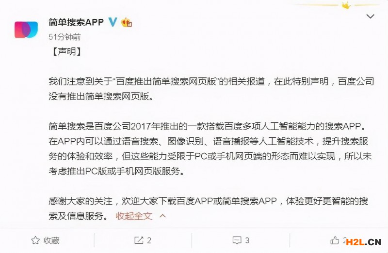 對(duì)此,簡(jiǎn)單搜索APP官微回應(yīng)稱(chēng),百度自始至終并未推出簡(jiǎn)單搜索網(wǎng)頁(yè)版,也沒(méi)有考慮推出PC版或手機(jī)網(wǎng)頁(yè)版服務(wù)。