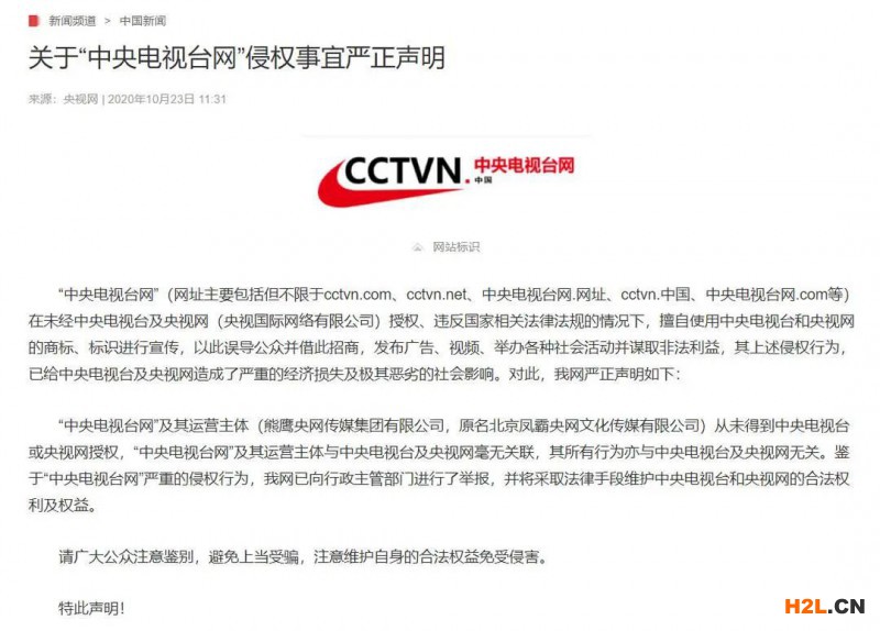 央視網(wǎng)發(fā)布聲明訴侵權(quán)
