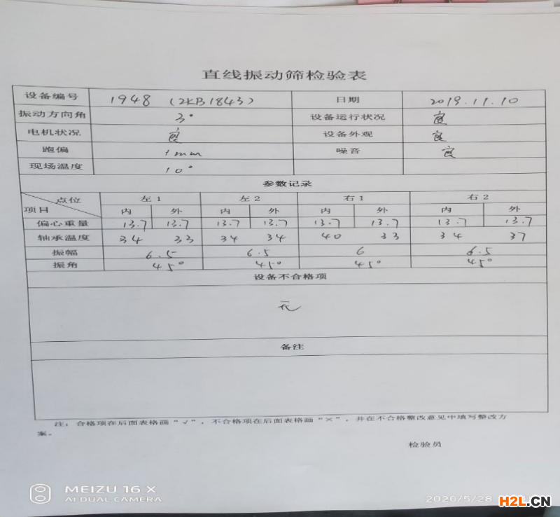 圖5-1 《直線振動(dòng)篩檢驗(yàn)表》示例