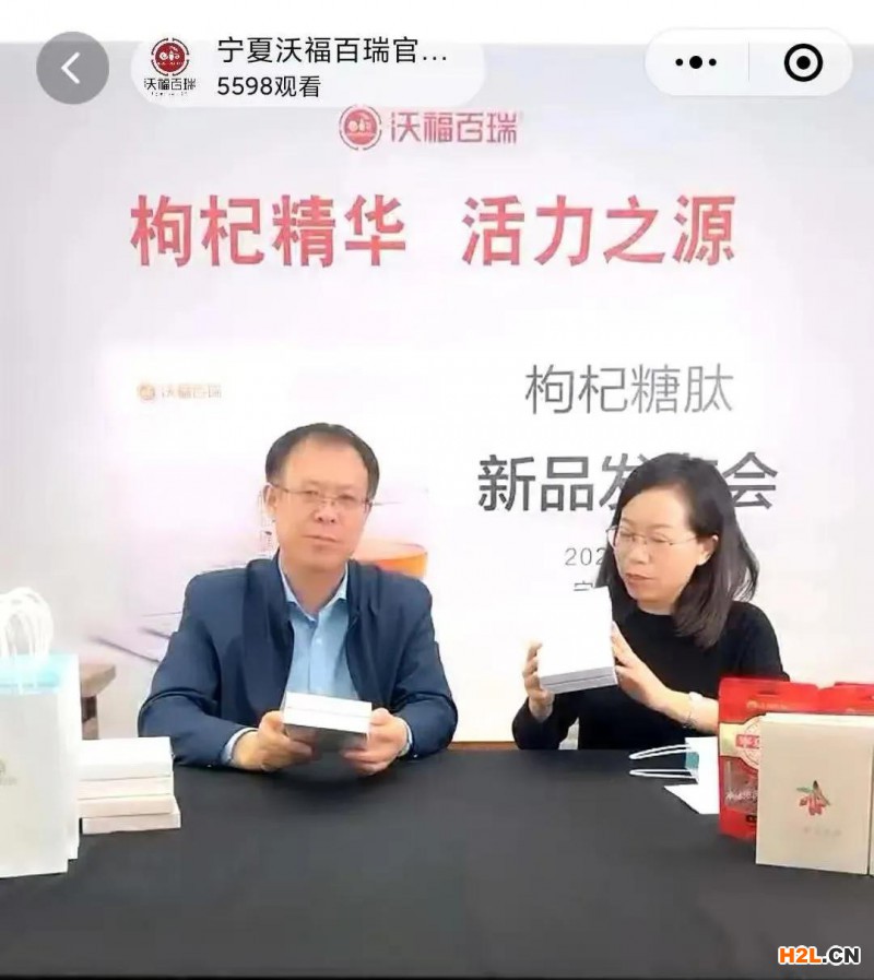 在沃福百瑞的官網(wǎng)上,枸杞糖肽顆粒沖劑產(chǎn)品已經(jīng)作為成品在售。4月10日,沃福百瑞還為“枸杞糖肽顆粒”舉辦了新產(chǎn)品線上直播發(fā)布會(huì),沃福百瑞董事長潘泰安親臨直播間。