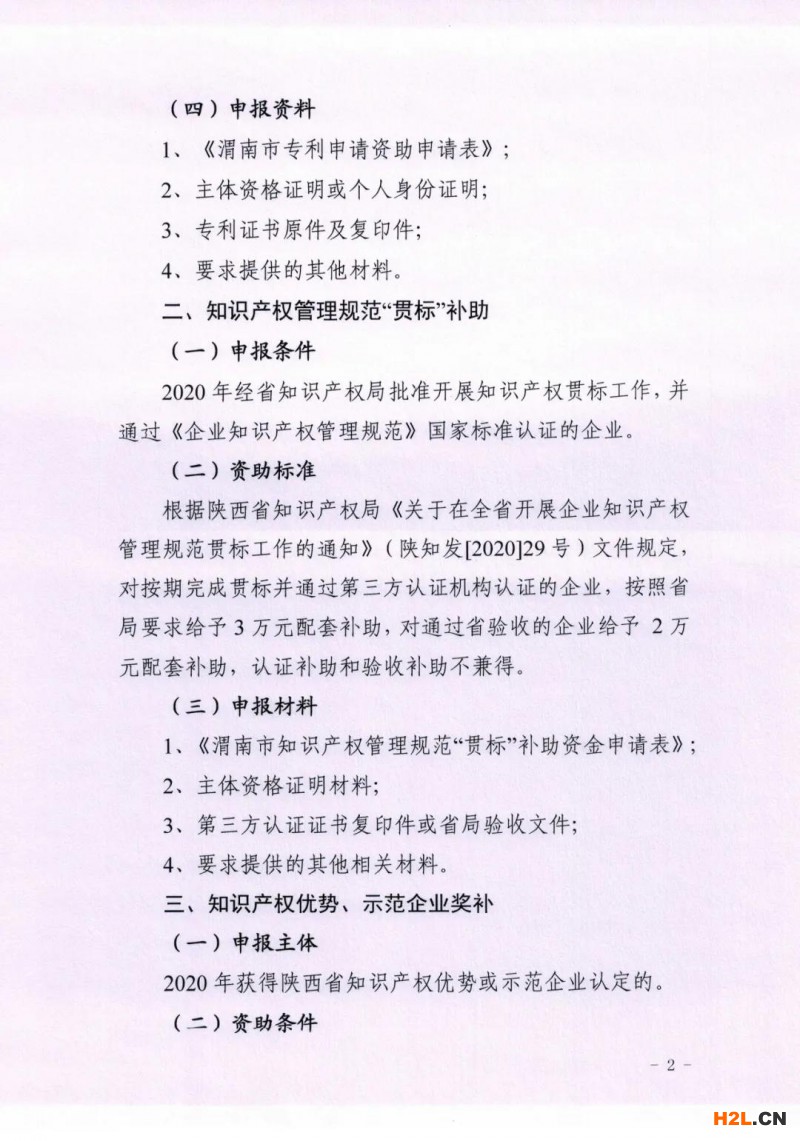 關(guān)于申報(bào)陜西省渭南市2020年知識(shí)產(chǎn)權(quán)貫標(biāo)獎(jiǎng)勵(lì)的通知