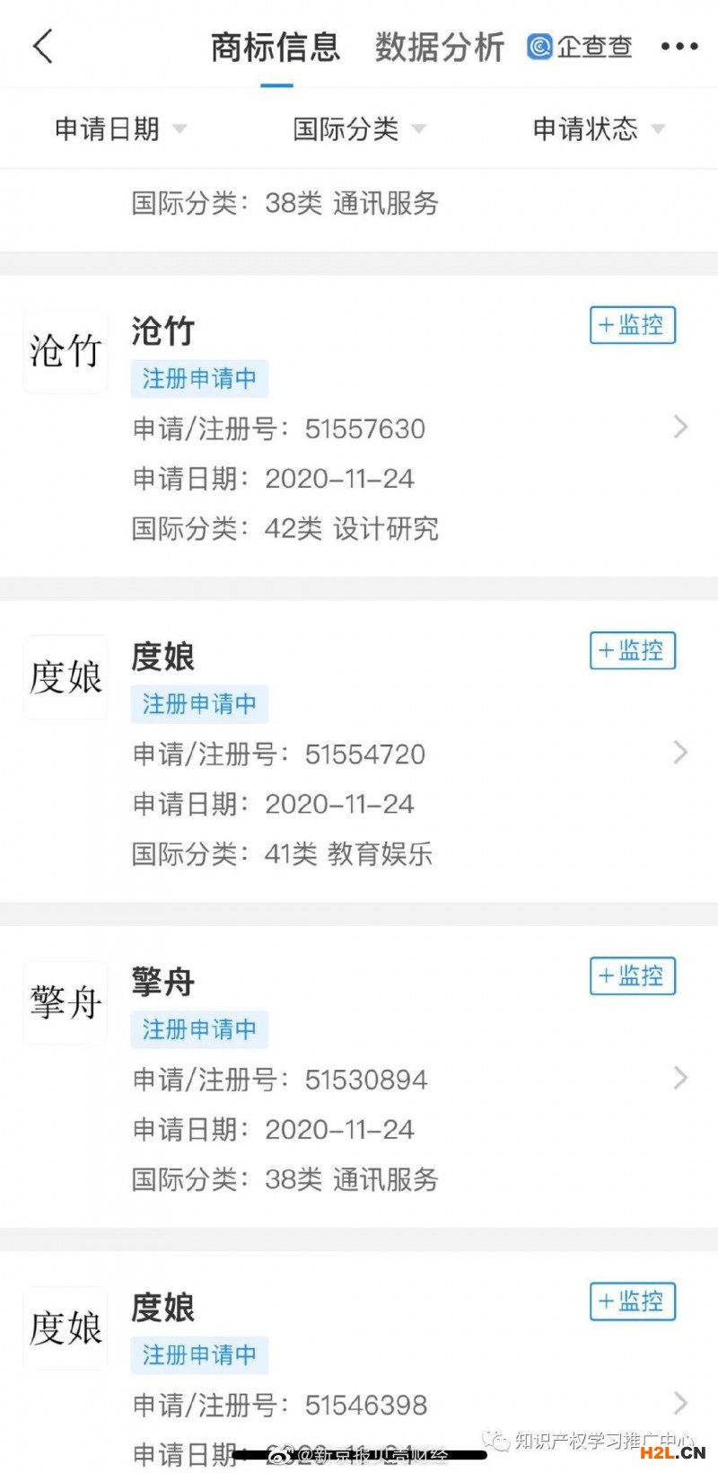 近日,百度在線網(wǎng)絡(luò)技術(shù)(北京)有限公司申請(qǐng)多條“度娘”商標(biāo),國(guó)際分類(lèi)包含廣告銷(xiāo)售、通訊服務(wù)、教育娛樂(lè)、科學(xué)儀器等,商標(biāo)狀態(tài)均為“注冊(cè)申請(qǐng)中”。申請(qǐng)日期為2020年11月24日。同時(shí),還申請(qǐng)了“擎舟”“滄竹”“律臨”“百度鷹眼”等多個(gè)商標(biāo)。