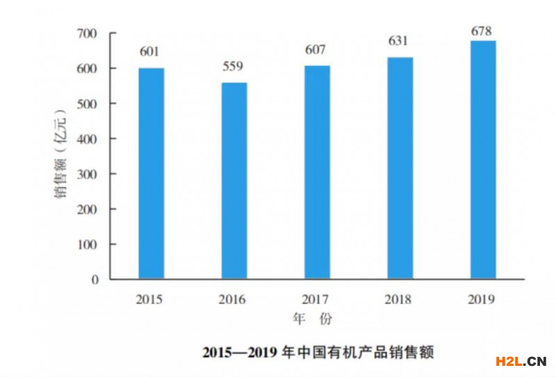 近年來,我國有機(jī)產(chǎn)品的銷售額相對穩(wěn)定增長,基本保持在600億元以上。相比2015年,2019年我國有機(jī)產(chǎn)品銷售額增加了1.13倍,2019年我國有機(jī)產(chǎn)品估算的銷售額為678億元,較2018年增加了46億元。