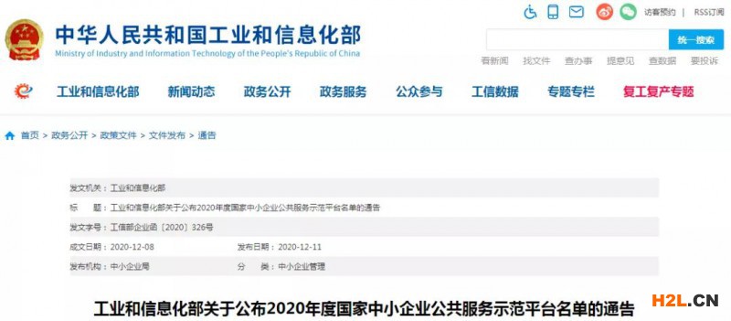 工業(yè)和信息化部關(guān)于公布2020年度國家中小企業(yè)公共服務(wù)示范平臺名單的通告
