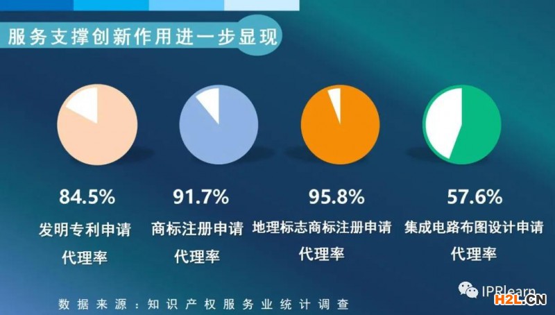 2019年,專利代理機(jī)構(gòu)代理發(fā)明專利申請共118.4萬件,占2019年發(fā)明專利申請總量的84.5%(即代理率為84.5%)。2019年,專利代理機(jī)構(gòu)共為39.7萬家企業(yè)申請人提供代理服務(wù),較上年增長16.0%。第二十一屆中國專利獎獲獎專利中,90.7%委托專利代理機(jī)構(gòu)代理。2019年商標(biāo)代理機(jī)構(gòu)代理的商標(biāo)注冊申請占全部商標(biāo)注冊申請量的91.7%;服務(wù)機(jī)構(gòu)代理地理標(biāo)志商標(biāo)注冊申請1455件,代理率為95.8%;服務(wù)機(jī)構(gòu)代理集成電路布圖設(shè)計申請4789件,代理率為57.6%,同比提升3.8%。知識產(chǎn)權(quán)服務(wù)機(jī)構(gòu)服務(wù)創(chuàng)新主體、支撐創(chuàng)新發(fā)展的作用進(jìn)一步顯現(xiàn)。