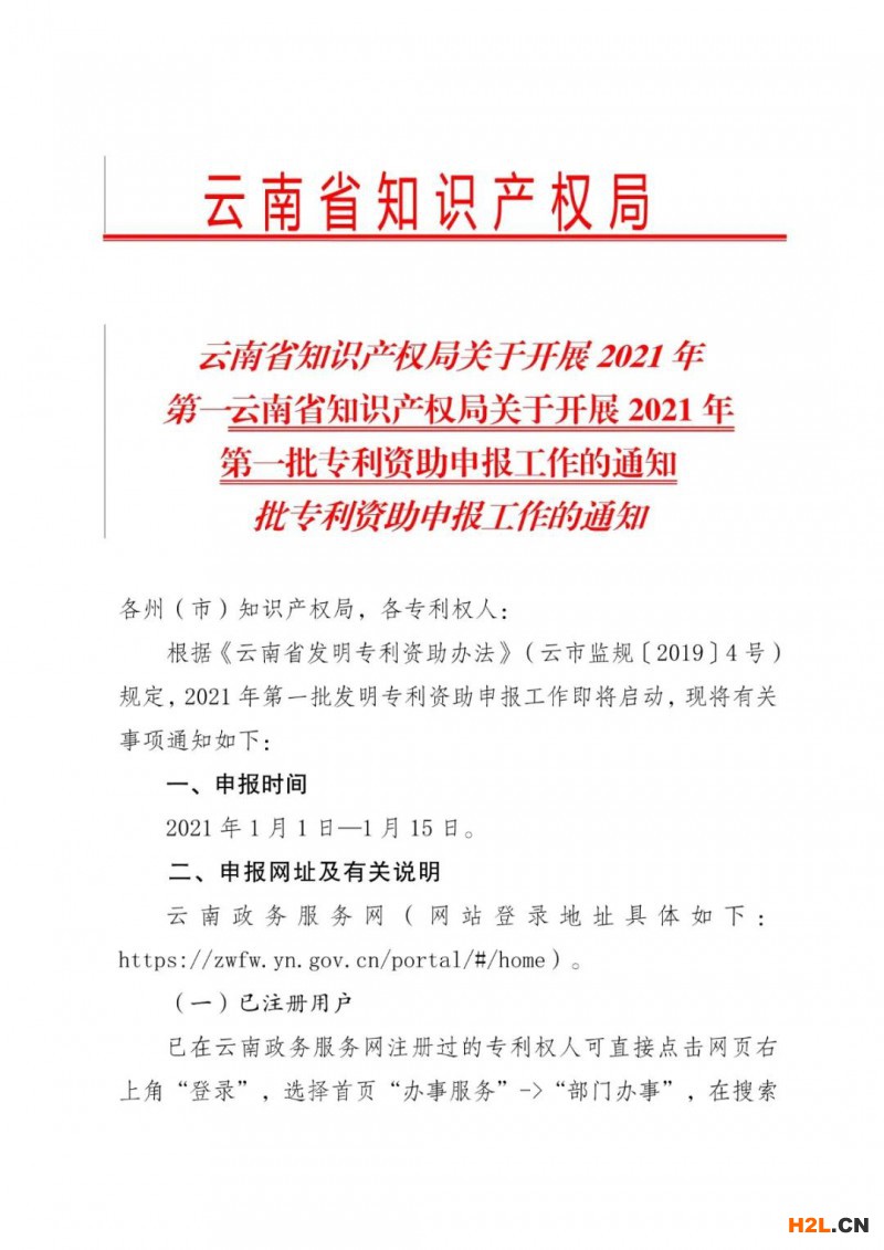 核心提示:云南省知識產(chǎn)權(quán)局關(guān)于開展2021年 第一批專利資助申報工作的通知