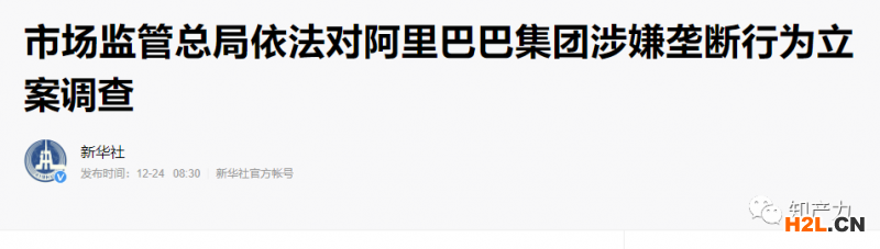 據(jù)新華社12月24日消息,近日,市場監(jiān)管總局根據(jù)舉報(bào),依法對(duì)阿里巴巴集團(tuán)控股有限公司實(shí)施“二選一”等涉嫌壟斷行為立案調(diào)查。