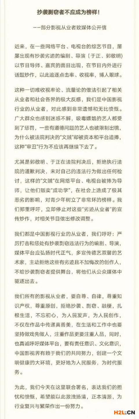 近日,知名編劇宋方金、汪海林等人在微博上發(fā)布了111位編劇、導(dǎo)演、制片人等影視從業(yè)者聯(lián)名的公開信。公開信呼吁,抄襲者不應(yīng)成為榜樣,并公開抵制于正、郭敬明出任演技類綜藝節(jié)目導(dǎo)師,批評(píng)最近播出的《我就是演員3》等節(jié)目為追逐點(diǎn)擊率、收視率、博取觀眾眼球使用有抄襲劣跡的編劇、導(dǎo)演。