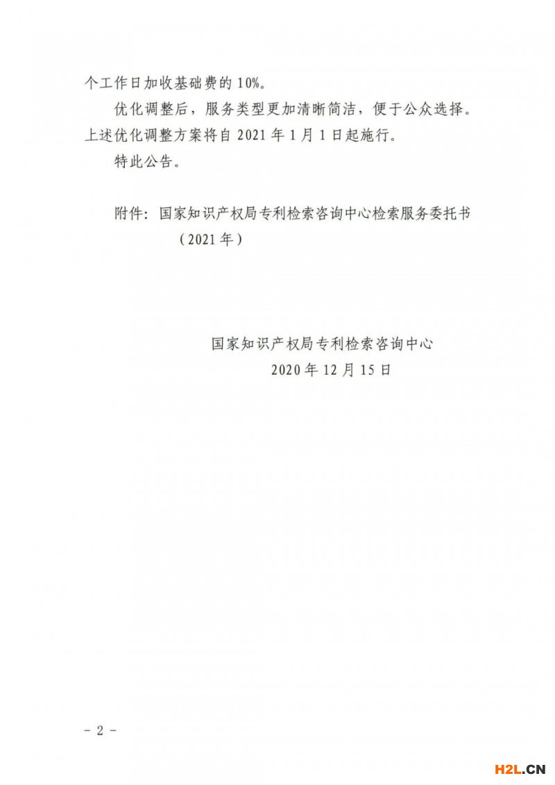 據(jù)其官方發(fā)布的“關(guān)于《國家知識產(chǎn)權(quán)局專利檢索咨詢中心產(chǎn)品及服務(wù)優(yōu)化調(diào)整方案》的公告”顯示,自2021年01月01日起,檢索咨詢中心對《國家知識產(chǎn)權(quán)局專利檢索咨詢中心檢索服務(wù)委托書》服務(wù)內(nèi)容和費(fèi)用標(biāo)準(zhǔn)進(jìn)行了優(yōu)化調(diào)整。
