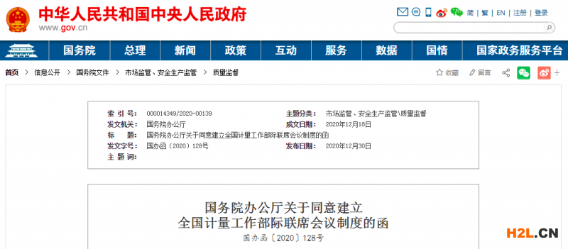 國辦:建立全國計量工作部際聯(lián)席會議制度